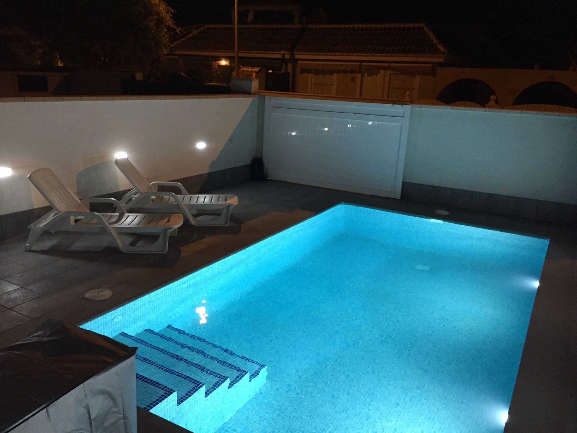Der Pool ist 6m x 3,5m groß und hat Stufen und Sitzgelegenheiten. Der tiefste Punkt ist 1. 6m und der flache Bereich ist 1. 2m. Um den Pool herum ist Platz zum Entspannen auf den Liegestühlen. Zum Abkühlen gibt es eine Dusche, Villa Nerea ist zweifellos ein ganzjährig entspannendes Ferienhaus.